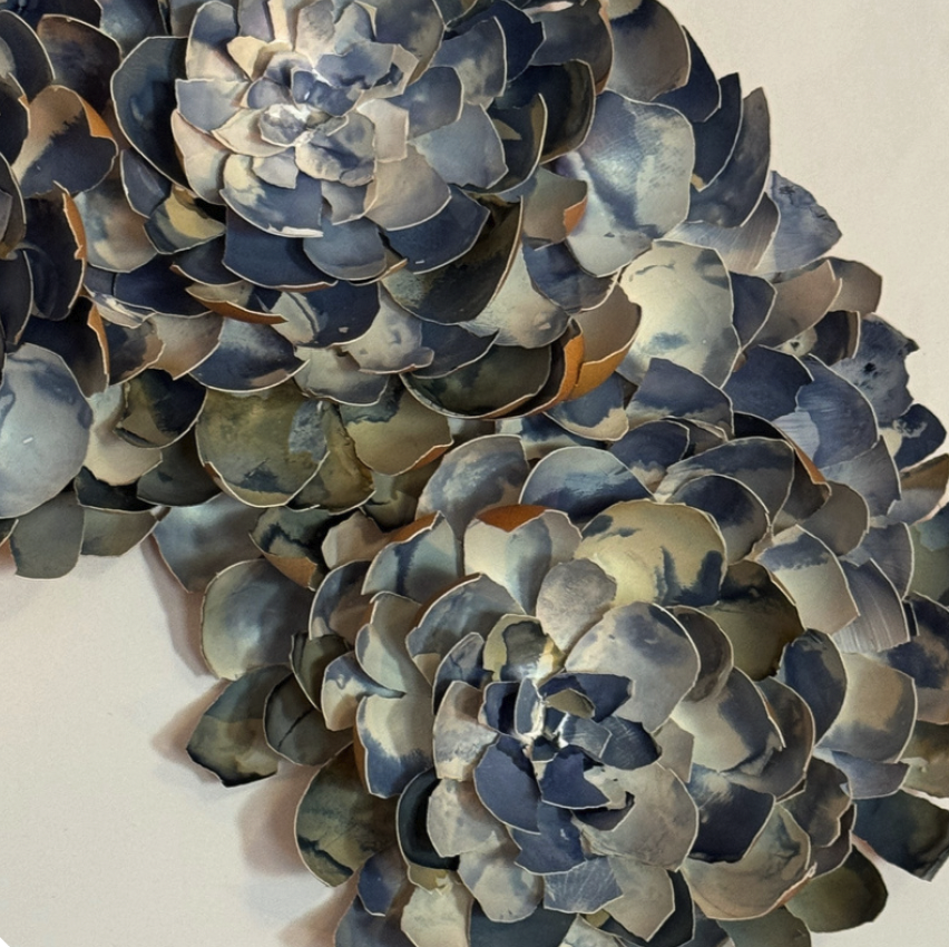 The artworks incorporate elements of nature, such as leaves, flowers, and branches. The viewer's engagement emphasizes the connection between humans and nature. Through the appreciation of the delicate nature of the artwork, I aim to strengthen the symbiosis between humans and the environment, specifically focusing on acceptance of the ongoing cycles of life and nature.